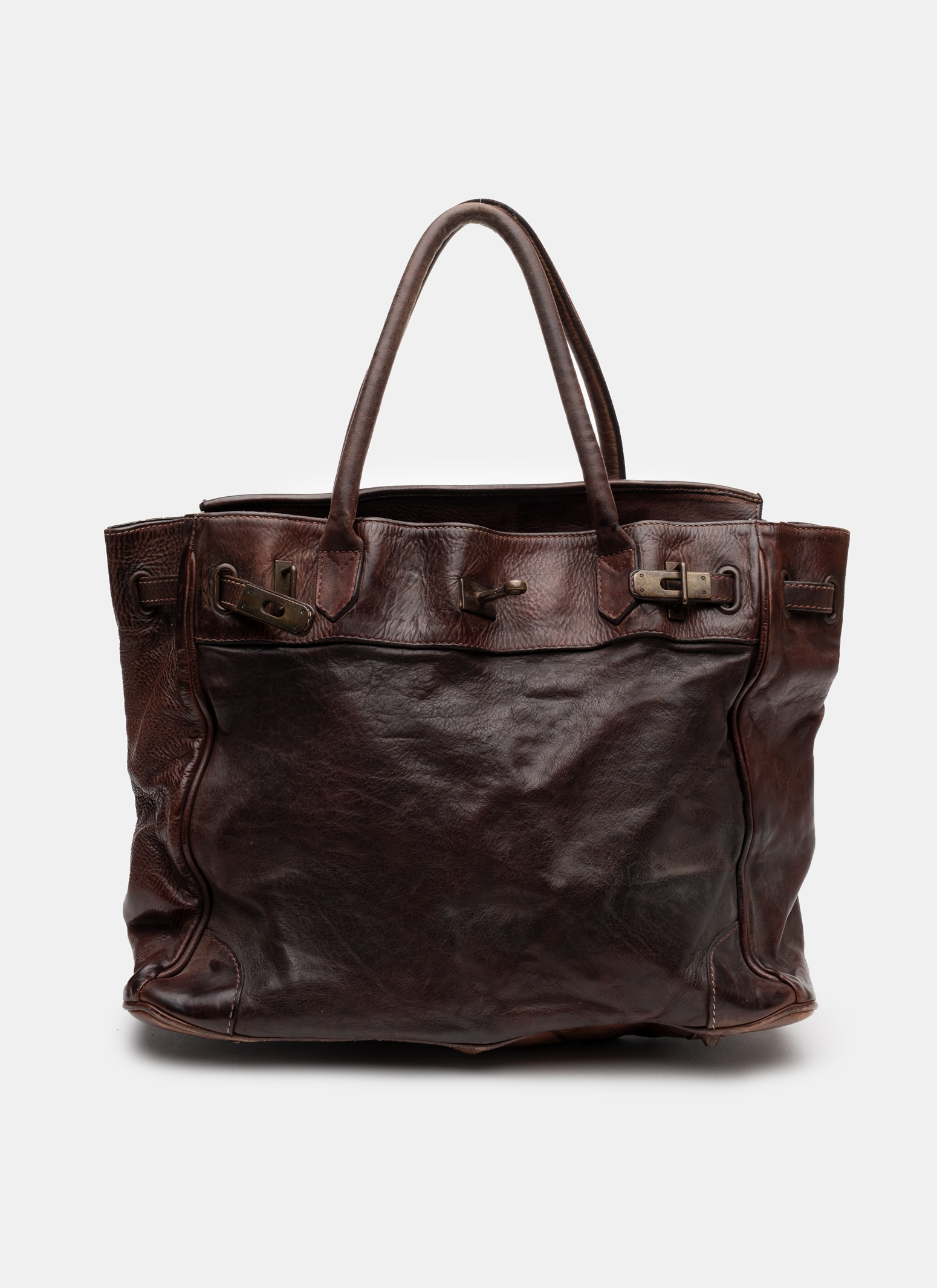 Calf leather carry-all, Garment-dyed post construction for a vintage feel. Patina and irregularities are intentional.